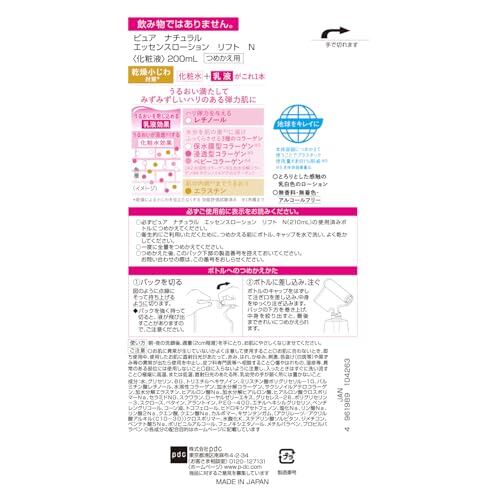 Pure Natural (ピュア ナチュラル) エッセンスローション リフト つめかえ 200mL 化粧液 高保湿 乾燥対策 化粧水 乳液 2in1 レチノール ヒアルロン酸 コラーゲン アミノ酸 ペプチド スキンケア