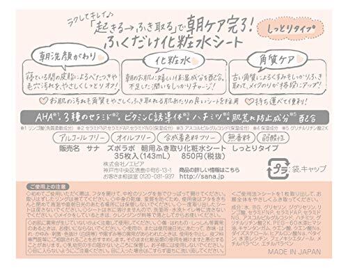 ズボラボ 朝用ふき取り化粧水シート しっとりタイプ ふきとり(洗顔+化粧水+角質ケア) 朝用 35枚 (x 1)