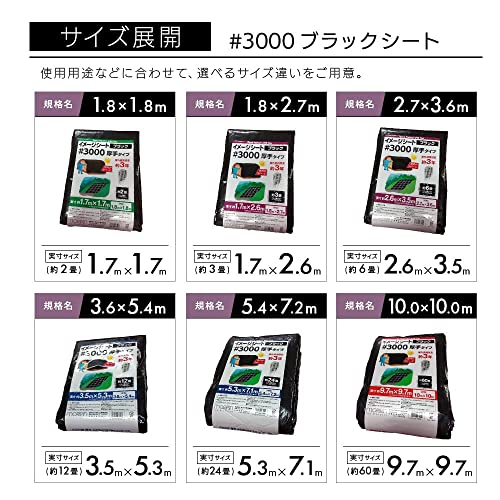 【仕様】本体サイズ:3.6×5.4m(呼称)、実寸サイズ:3.5m×5.3m(約12畳)/材質:ポリエチレン(本体)、アルミニウム(ハトメ)/ハトメ数:20ヵ所/ハトメ間隔:約90cm/屋内仕様目安:約3年/カラー:ブラック
