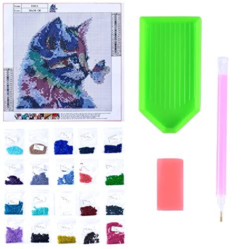 5dダイヤモンドアート 猫と蝶 5D ダイヤモンド塗装 モザイクアート ダイヤモンドペインティング キット ビーズ絵画 全面貼り付けタイプ ビーズアート モザイクビーズ 芸術品 装飾 DIY 手芸 キット 30x30cm