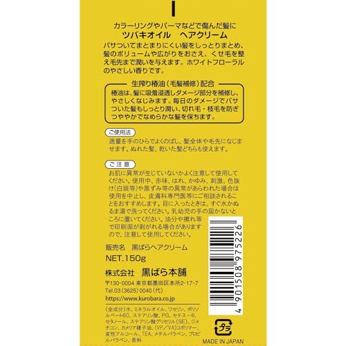 生搾り製法の椿油配合(保湿・ツヤ成分)うるおいとツヤを与えるヘアクリーム。