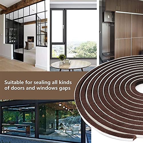 YFFSFDC 隙間テープ ブラウン すきまモヘアテープ 9mm×5mm×5m 虫よけすき間テープ 防音 防風 防寒 網戸用 き間テープ 玄関ドア 戸当たり 窓 サッシ用 隙間対策