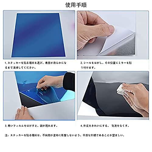 【注意】ミラー表面は保護シールが付いていますので、壁などに設置した後に剥がしてください。 保護シールをはがした後はミラー面に触らないようにしてください(指紋の跡や傷が残る場合があります)。出来るだけ汚さないよう注意が必要です。