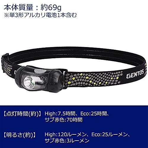 GENTOS(ジェントス) LED ヘッドライト 単3電池式 120ルーメン 防滴 CP-195DB アウトドア 防災 赤色サブLED ブラック
