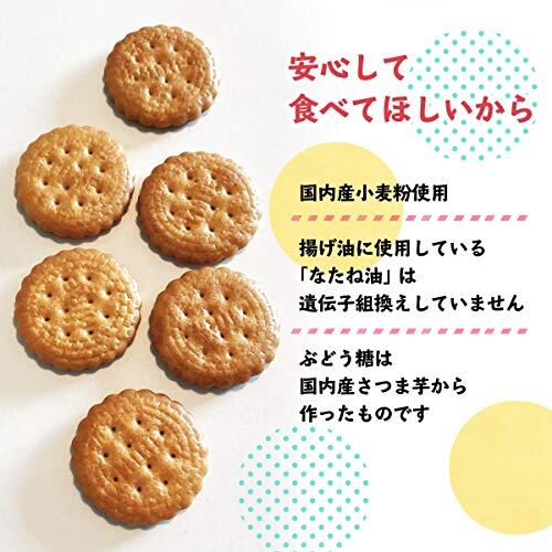 原材料:小麦粉(岐阜)、食用植物油脂[なたね油{菜種:遺伝子組換えでない(オーストラリア)}、パーム油(マレーシア他海外)]、砂糖(国内産他海外)、ショートニング(パーム油)、ぶどう糖[さつまいも(鹿児島)]、食塩(兵庫、高知)、膨張剤(重曹)