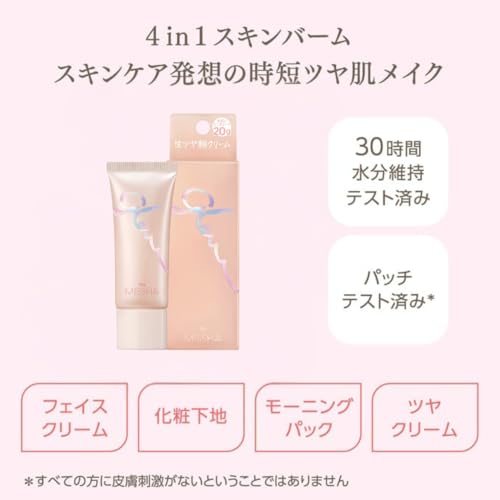 4 in 1 スキンバーム デイクリーム + モーニングパック + プライマー + ツヤクリーム あなたのツヤ肌メイクの土台をこれひとつで。 高保湿なのにべたつかない 健康的なツヤ肌に仕上げ、メイクの乾燥崩れも防ぎます。