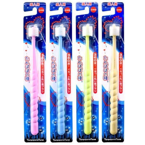 たんぽぽの種 360度ぐるっと丸い歯ブラシ 極細毛 (成人用 4本セット)