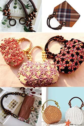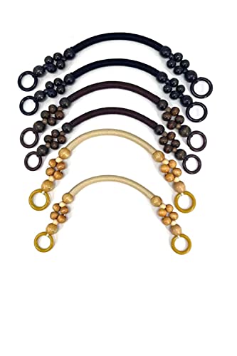 YFFSFDC 持ち手 木製 ウッドビーズ付き 6個セット 財布のハンドル ハンドバッグハンドル DIY 手芸 バッグ用 修理 交換用 持ち手 取っ手