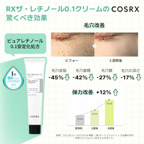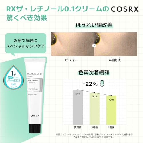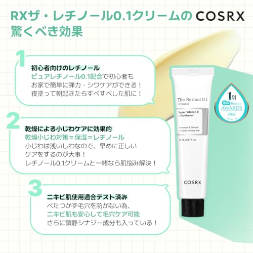 COSRX 純粋レチノール0.1クリーム20ml レチノールクリーム ビタミンE アラントイン ヒアルロン酸 パンテノール ピュアレチノール ハリ ツヤ 弾力 敏感肌 人体適用テスト済み コスアールエックス 韓国スキンケア 韓国化粧品