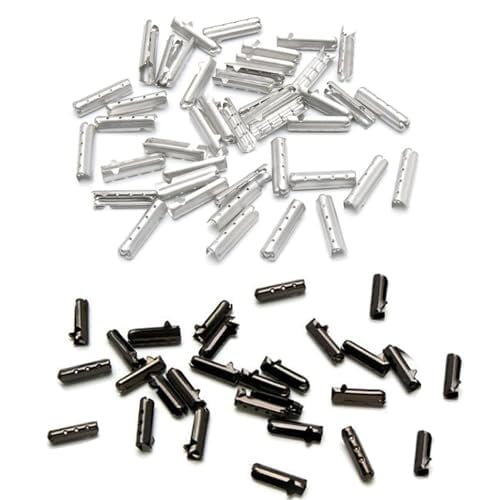 [YFFSFDC] 靴紐 シューレース 先端 金具 靴ひも シューレース 留め具 ひも用 靴パーツ 先っぽ チップ パイプ 金属製 スニーカー/ブーツアクセサリー 2色各10個 計20個 (シルバー+ブラック)