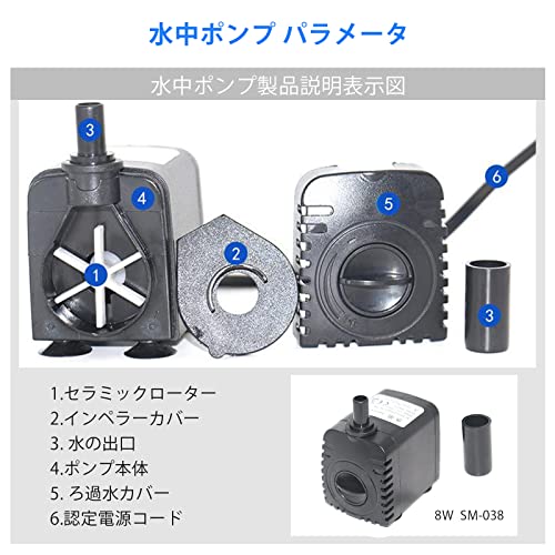 【機能&使用場所】機能:水族館給水、水槽水循環 、酸素を取り込んで、水槽の水の流れを作成し、自然の海/川の環境をシミュレートしています。使用場所:水槽、水族館、噴水、魚の池、魚介類の養殖場など水循環は必要な所、家庭プールや噴水の給水排水などのご使用も可能です。