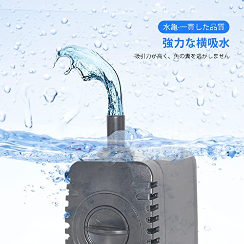 【超静音設計】高性能ステンレス鋼シャフトハートの使用、淡水・海水共通で水とポンプ壁の摩擦・共振を低減。従来品より約80%低減、超静音・超低振動・小型・軽量です。30~40デシベル、底部に吸盤を備え、安定性が高く騒音を低減。超強力な吸盤設計、超頑丈で固まりにくく、吸着力が強く、脱落しにくい。
