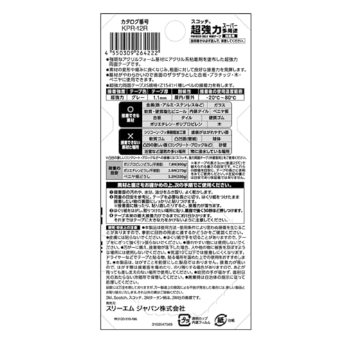 3M スコッチ 超強力両面テープ プレミアゴールド スーパー多用途 粗面用 幅12mm長さ1.5m KPR-12R