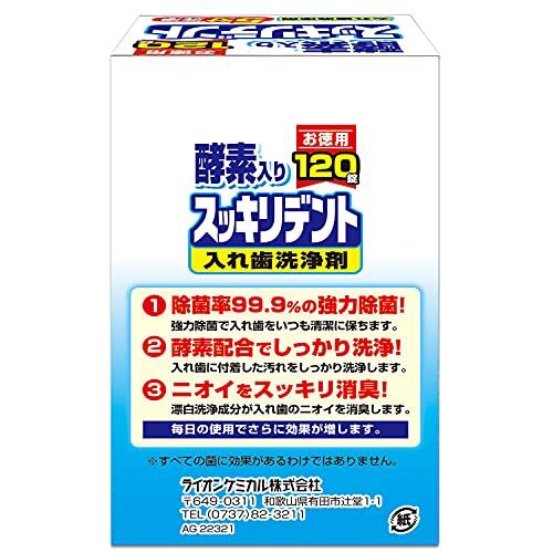 ライオンケミカル スッキリデント 入れ歯洗浄剤 総入れ歯用 酵素入り 99.9%除菌 ミントの香り 120錠入