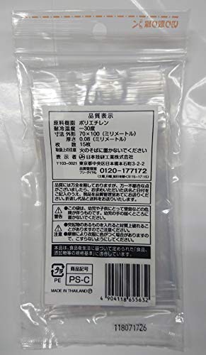 日本技研工業 プチチャック付き小物袋 透明 7×10cm 厚み0.08mm 小分けに便利 薬や絆創膏などの整理に PS-C 15枚入