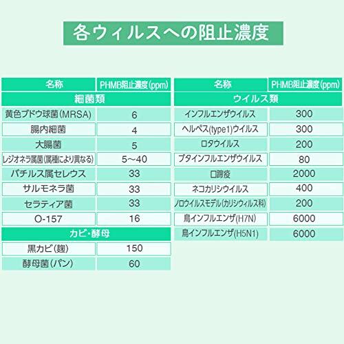 用途:ドアノブ、洗面所・キッチンまわり、リビング用品、お風呂まわり、排水口、衣類やタオルなどの布製品、靴などの除菌