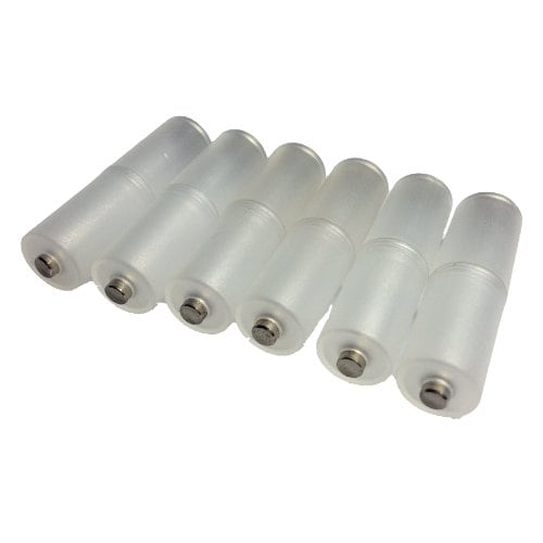単4形電池→単3形電池 電池スペーサー (電池変換アダプター)ホワイト 6本セット (マイナス極側蓋つき)