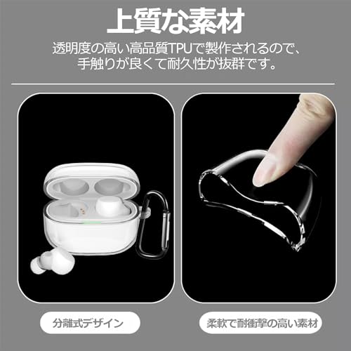 TALENANA for Sony LinkBuds S WF-LS900Nケース クリア 保護カバー TPU素材 防水 キズ防止 WF-LS900N保護ケース 装着充電可能 WF-LS900N ケース 落下防止 耐衝撃 全面保護 カラビナ付き WF-LS900N 対応 (クリア)