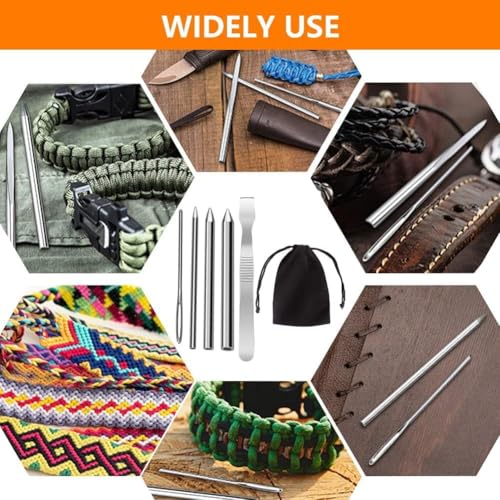 COOLBOTANG パラコードステッチ 6点セット パラコードニードル ステンレス スチール パラコード針 手縫い針 編み針セット ブレスレット用 編み物 クラフト用品 裁縫道具 シャフト 手芸用品 ハンドメイド 制作道具 手作り道具 巾着袋付き