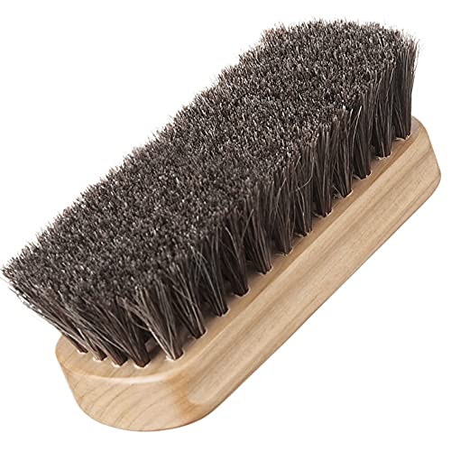 サイズ:長さ133mm*幅43mm*厚さ:40mm(毛足長さ:約25mm)、 毛の種類:天然馬毛 100%、 用途:革製品のクリーム添付、ホコリ落としに。スムースレザー(一般的な表革)の靴、パンプス、ブーツ、