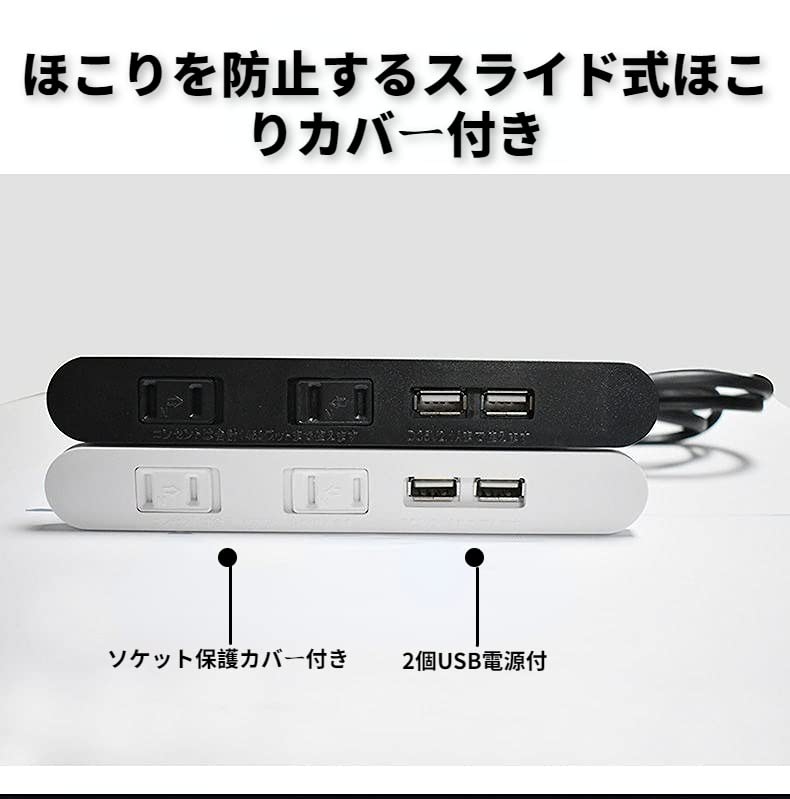 4.2つ口+2USBの組み合わせ。スライド式ほこりカバー付き。