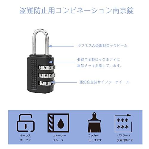 南京錠コンビネーションロック旅行南京錠ドアロック3桁ダイヤルロック旅行用品ポータブル盗難防止防水防錆小型荷物旅行バッグバックパックに利用可能ブラック