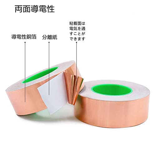 銅箔テープ 片面 両面導電性 3mm 5mm 6mm 8mm 10mm 12mm 15mm 18mm 20mm 25mm 30mm*20M銅 粘着 テープ 放射線防護 静電気除去 ギター導電テープ 銅箔テープ アルミテープ 静電気除去 電磁波シールド ギター/電子部品/屋根の修理用EMI対策 多用途 (両面導電性, 5mm*20M)