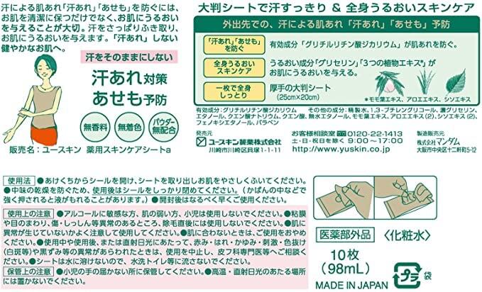 【3個セット】ユースキン 薬用スキンケアシート あせもシート 10枚 ×3個セット(汗あれ 全身用シート 制汗)