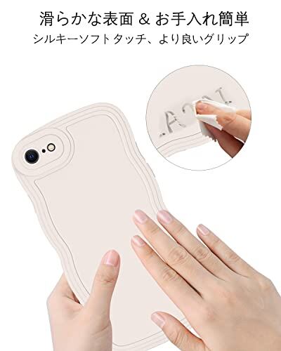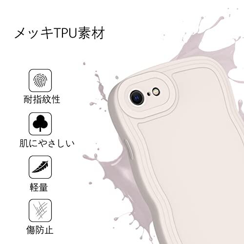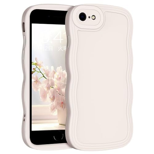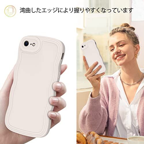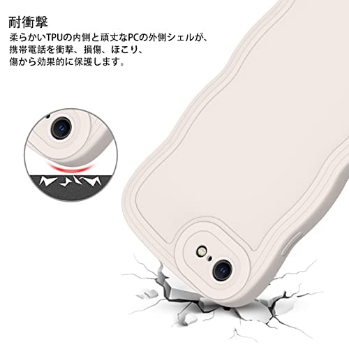 GUAGUA iPhoneSe ウェーブ ケース iPhone7 8 いPhone SE 7 8 ケース うねうね 可愛い se第2世代 se第3世代人気 スマホケース ソフトTPU バンパー 耐衝撃 超軽量 薄型 滑り止め ワイヤレス充電対応 ストラップホール付き アイフォン SE3/SE2/8/7 なみなみ カバー(ベージュ オフホワイト)