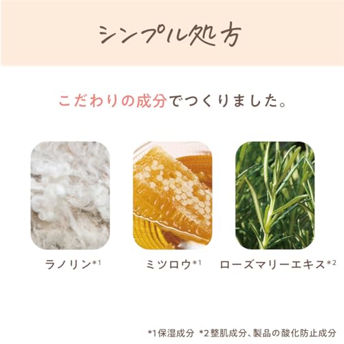 【 成分はたった4つのシンプル処方 】たったこれだけ。ラノリン、ミツロウ、香料、ーズマリーエキス