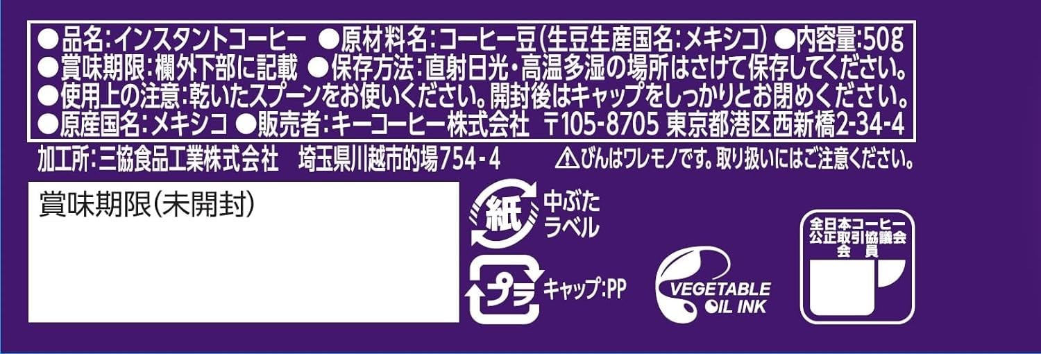 キーコーヒー インスタントコーヒー カフェインレス 瓶 50g