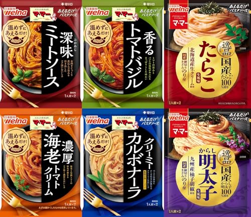 マ・マー あえるだけ あえるパスタソース 6種 洋風・逸品シリーズ(ミートソース、ナポリンタン、逸品たらこ生風味、逸品からし明太子生風味、海老トマトクリーム、カルボナーラ)