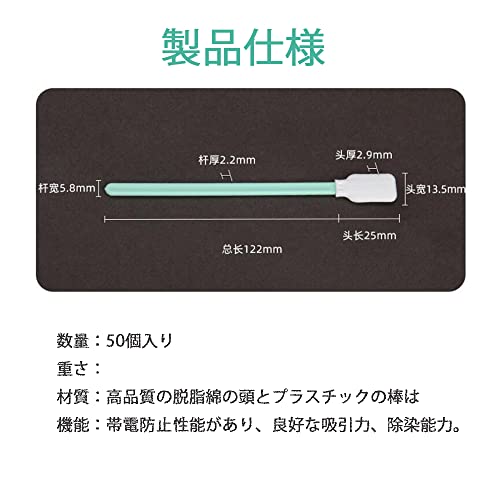 YFFSFDC 工業用綿棒 静電気防止綿棒 スポンジ綿棒 スポンジスティック 隙間ブラシ 先端洗浄 優れた汚染除去能力 実験用綿棒 プリンター レンズ カメラ用 (50個入り)