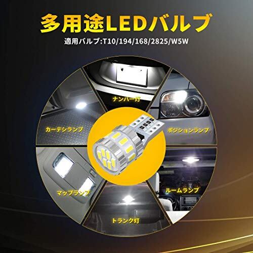 【多用バルブ】自動車適用。純正球(T10)とほぼ同じサイズなので、ルームランプ / ナンバー灯 / ポジションランプ/ カーテシランプ / トランク灯 / ライセンスランプ /クリアランス / テールランプ / ウエッジ電球などの交換ができ。スコダとVWのポジションとナンバー灯はキャンセラーできません。(他の輸入車はキャンセラーできないこともあります。)