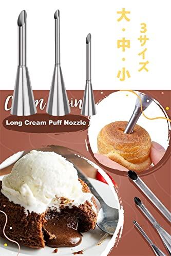 パッケージ内容:シュークリーム 口金 3個セット、サイズ:S/M/L、さまざまなデザートづくりにご活用ください。