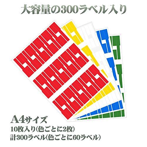 ケーブルラベル 300枚入 5色 ケーブルタグ 防水 防油 目印 電源ケーブル LANケーブル ラベル タグ 配線識別 整理 A4 手書き可能 屋外使用可能 (5色)