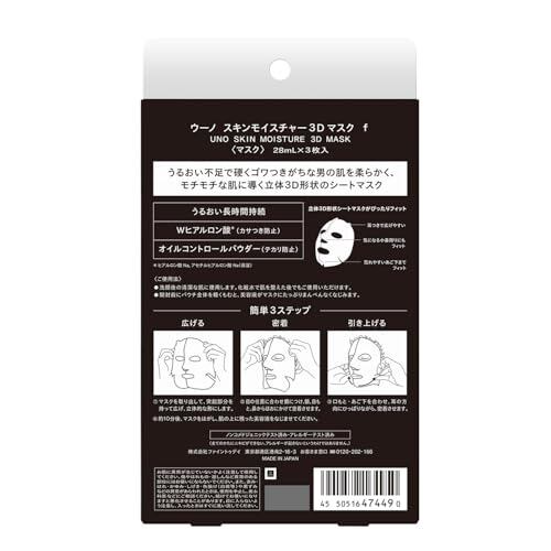 uno(ウーノ) スキンモイスチャー 3Dマスク 男性用 3枚入 (個別包装タイプ) フェイスケア シートマスク メンズ エステ うるおい モチモチ テカリ かさつき ごわつき