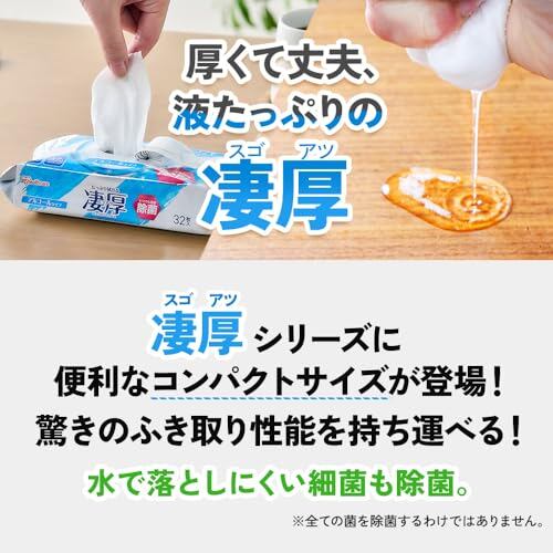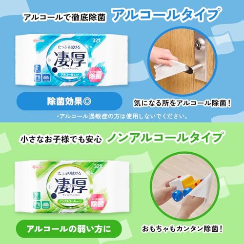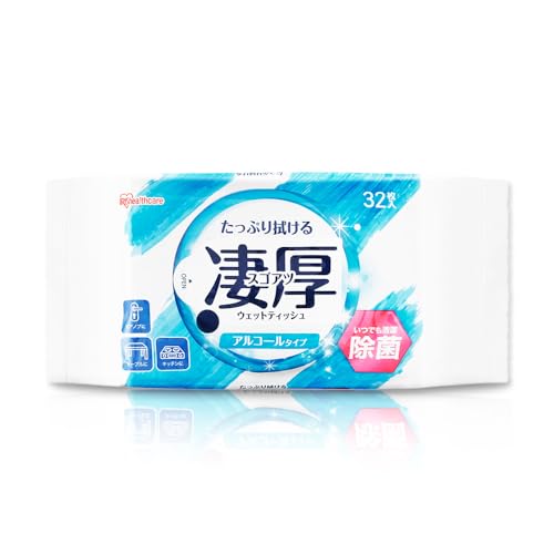 アイリスオーヤマ(IRIS OHYAMA) ウェットティッシュ 凄厚 アルコールタイプ 32枚入り 厚手 エンボス 加工 旅行 除菌 コンパクト 掃除 液 シミシミ 破れにくい WTP-32A1P