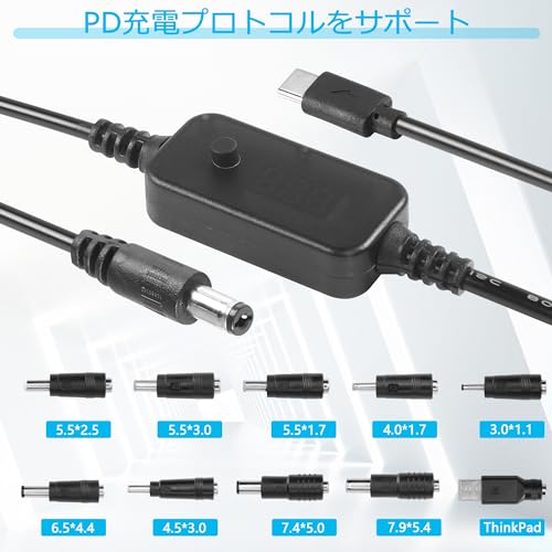 CERRXIAN USB C - DC PDアダプタケーブル(10コネクター・チップ付き)Type-C to DC電源ケーブル 出力調整可能電圧 5V-9V-12V-15V-20V PD急速充電ケーブル 50CM