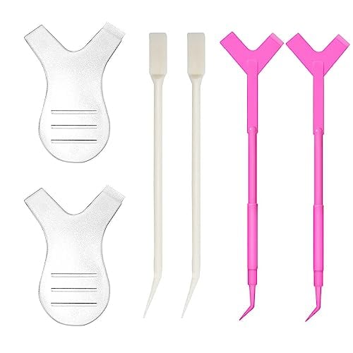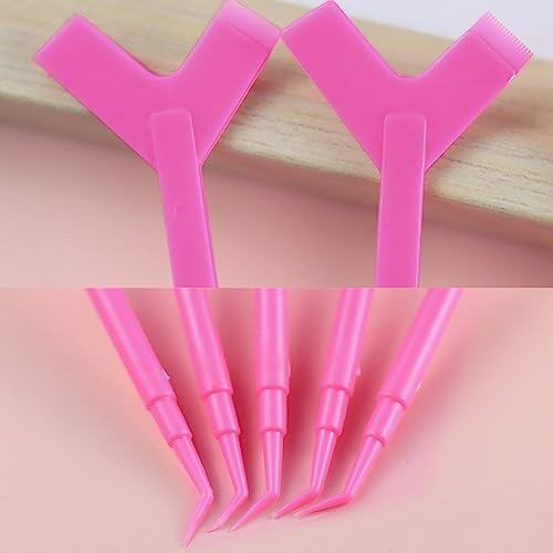 LOYELEY まつ毛パーマセルフ まつ毛パーマキット プレート スティック(バラ色) スティック(ホワイト) まつげブラシ まつ毛パーマY字コーム まつげグラフトカーラーコーム 化粧用/美容室/家庭用 (6枚セット)