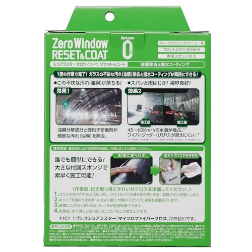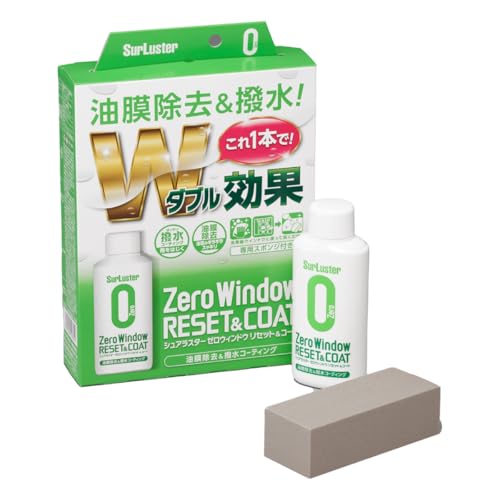 SurLuster(シュアラスター) ゼロウィンドウ リセット&コート 油膜 クリーナー 撥水 コーティング 塗りこみタイプ ガラス撥水剤 窓 フロントガラス サイドミラー 付属スポンジ付き 洗車 S-131
