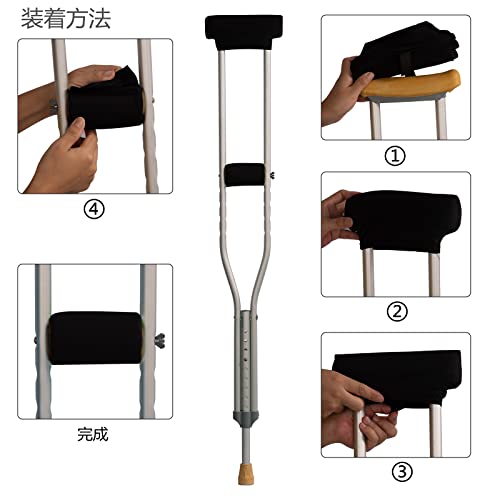 松葉杖 カバー 肉厚 痛み軽減 クッションカバー 滑り止め付き 洗える 松葉杖カバー 4個セット ブラック