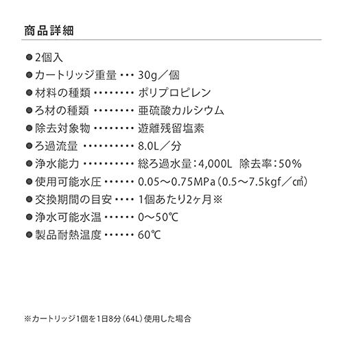 交換期間目安: 1個あたり2ヶ月(1日8分(64L)使用した場合)