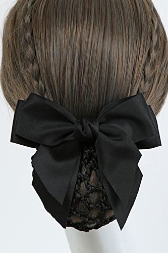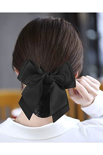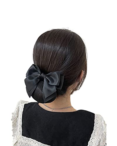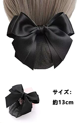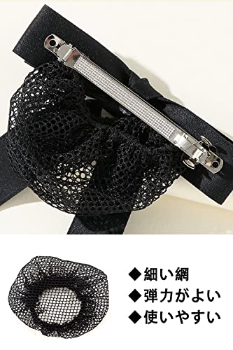 YFFSFDC シニヨンネット バレッタ ネット付き お団子ネット 髪ネット 髪留め シンプル 就活 卒業式 デート ヘアアクセサリー (ブラック)