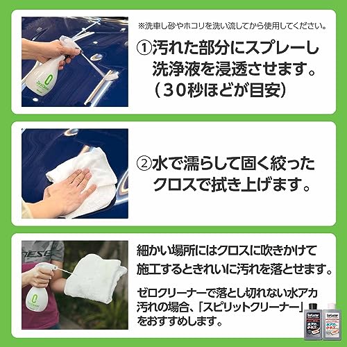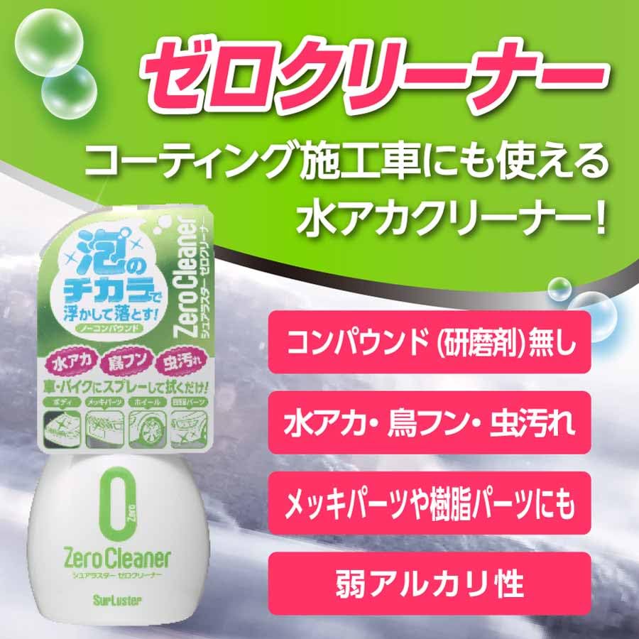 SurLuster(シュアラスター) ゼロクリーナー 洗車 水アカ除去や鳥フンや虫汚れに ノーコンパウンド ホイールや樹脂ウィンドウガラスメッキにも使える 車 ボディ コーティング車 バイク スプレー 全塗装色対応 弱アルカリ性 S-92