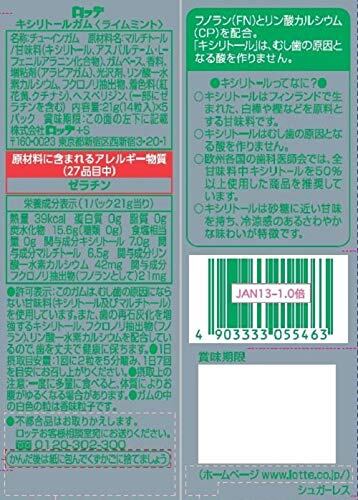 【トクホ】ロッテ キシリトールガム ライムミント 5パック