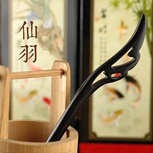 C-Moon(シー ムーン) 天然木 かんざし 黒壇 一本簪 シンプル 木製 一本 髪飾り 和装 (仙羽)