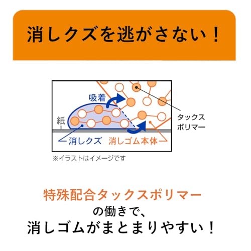 【特長2】消しクズをキャッチ/圧倒的なまとまりやすさを実現/周りを汚さずきれいに消せる