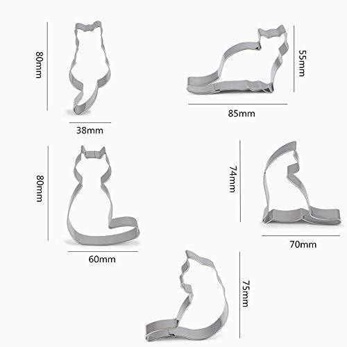 クッキー型 猫 5個セット ねこ クッキーカッター ステンレス製 ビスケット 抜き型 お菓子作り 製菓道具 手作り DIY ベーキングツール クリスマス 誕生日 パーティーデコレーション (猫 5個セット)