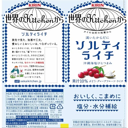キリン 世界のKitchenから ソルティライチ 500ml 24本 ペットボトル 塩分・水分補給飲料 熱中症対策 スポーツドリンク